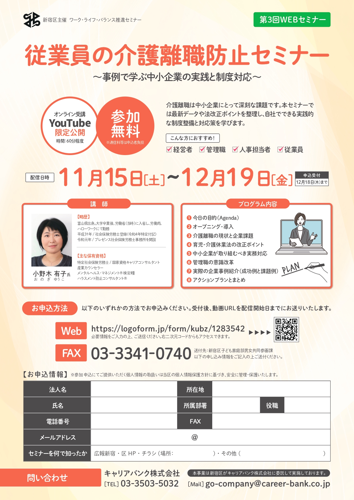 新宿区にて、動画配信をしました『従業員の介護離職防止セミナー』